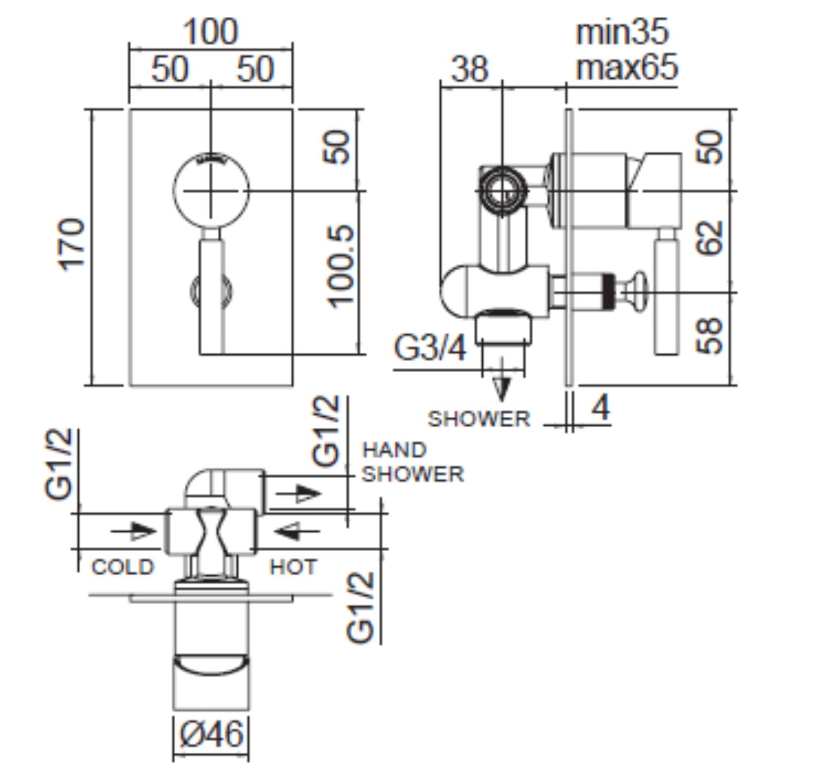 1 Miscelatore Doccia con deviatore (parte esterna) 4707B401A00CRCR