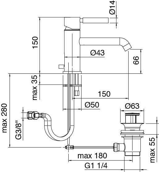 2 Miscelatore lavabo con scarico da L150 x H66 mm 47071129A00CRCR