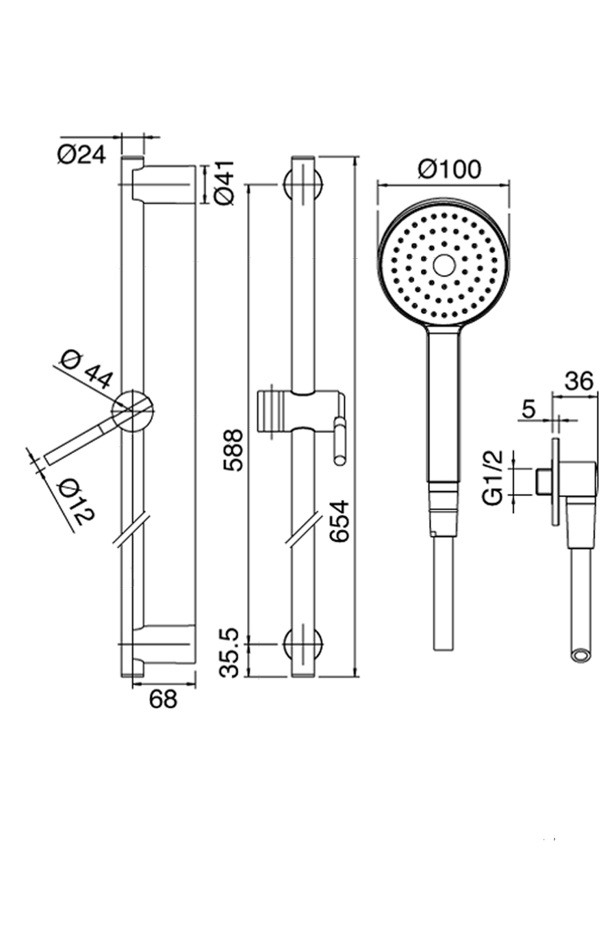Asta saliscendi con doccetta anticalcare.