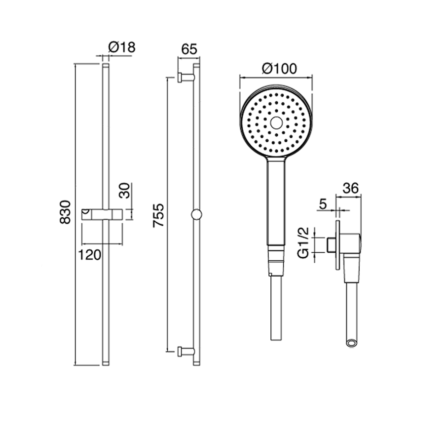 Set doccia due funzioni completo di presa acqua a muro e supporto.
