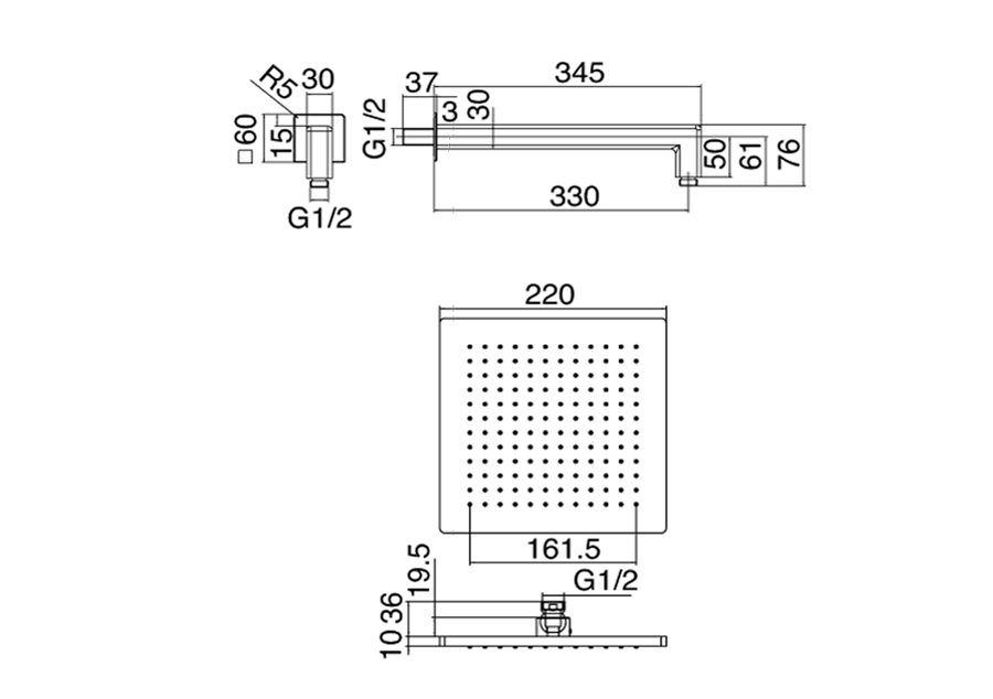 Braccio 330mm soffione 220mm marca Zazzeri modello Qquadro 5700BR01A00+2900SO15A00CRCR finitura ottone cromato anticalcare quadro ispezionabile rubinetteria arredamento arredo bagno parete garanzia 10 anni azienda certificata made in italy