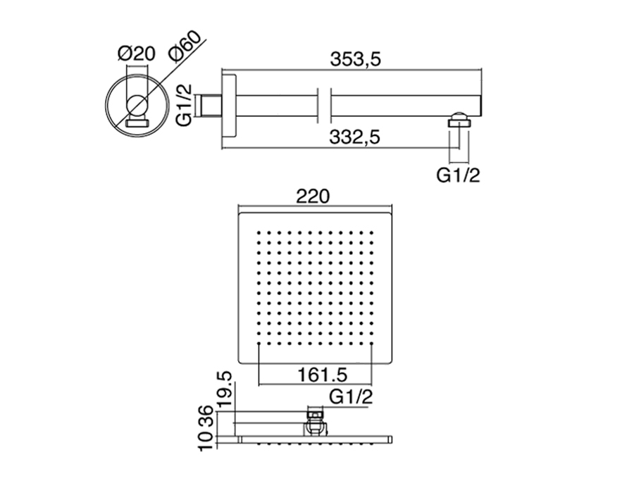 Braccio 330mm soffione 220mm marca Zazzeri modello Qquadro finitura ottone cromato anticalcare quadro ispezionabile rubinetteria arredamento arredo bagno parete garanzia 10 anni azienda certificata made in italy