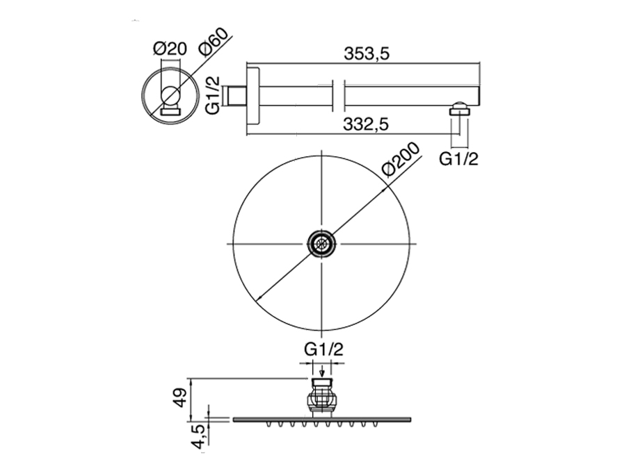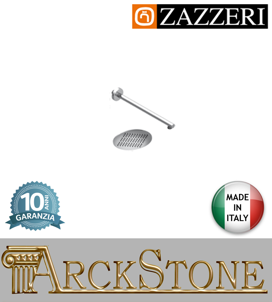 Braccio 353,5 mm soffione Ø200mm marca Zazzeri modello 100 finitura acciaio inox cromato anticalcare parete muro rubinetteria rubinetto arredamento arredo bagno casa autorizzato azienda certificata garanzia 10 anni qualità made in Italy