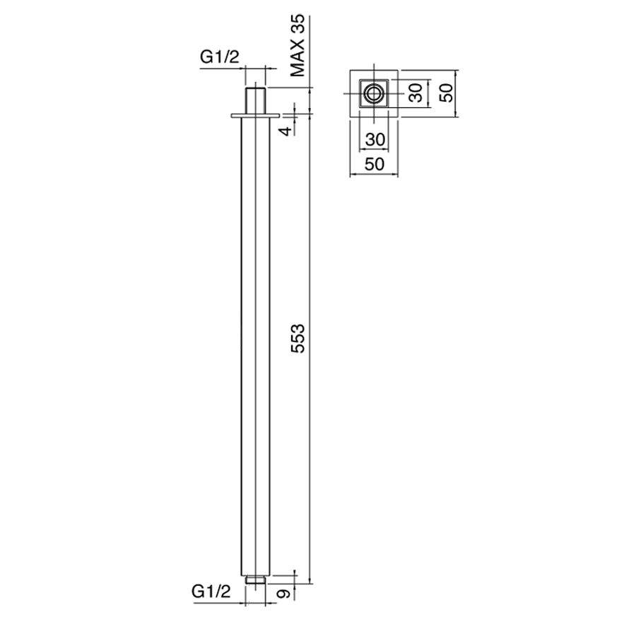Braccio doccia 550 mm marca Zazzeri modello Shower Unix soffitto finitura cromata rubinetteria muro casa arredamento bagno cromo incasso garanzia 10 anni azienda certificata qualità made in italy