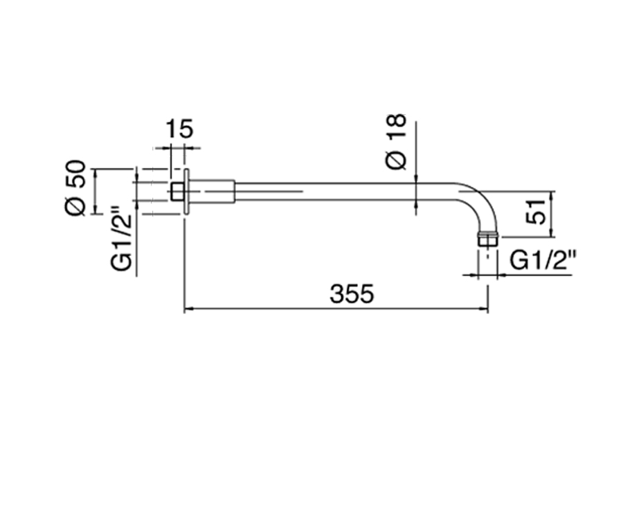 Braccio doccia marca Zazzeri modello Shower Unix Da-Da parete finitura cromata rubinetteria muro casa arredamento bagno cromo incasso lunghezza 355 mm garanzia 10 anni azienda certificata qualità made in italy