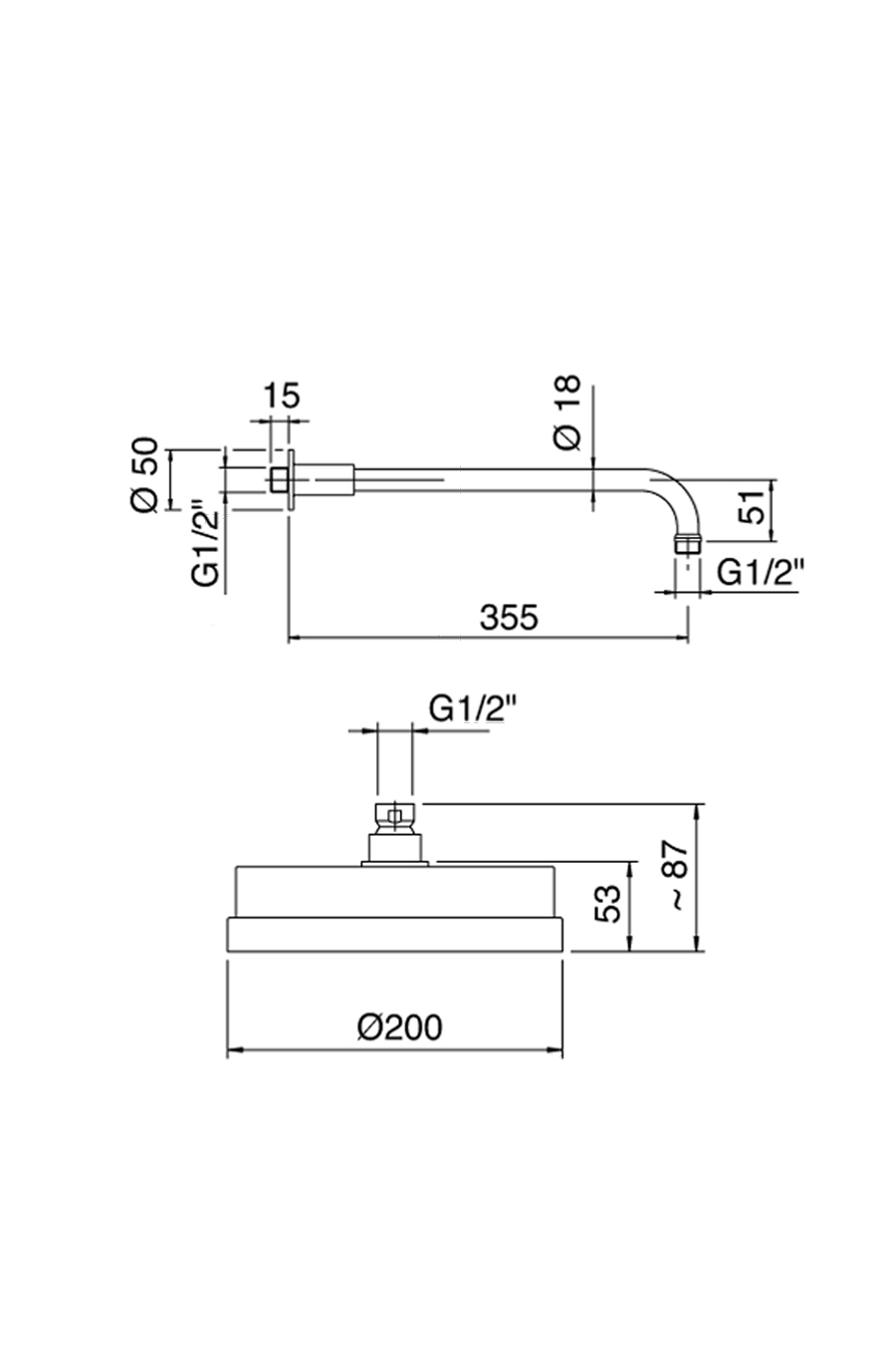 Braccio doccia con soffione anticalcare Ø200 mm.