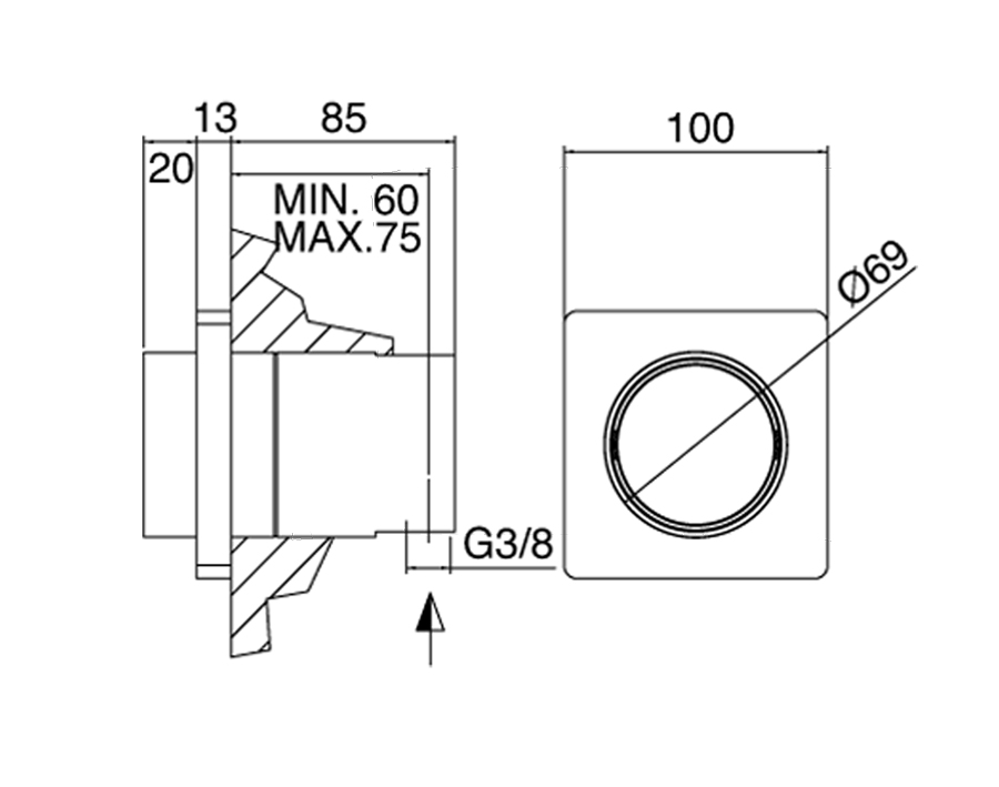 Cascata tubolare marca Zazzeri modello Qquadro turbo LED completo parete finitura cromata rubinetteria rubinetto arredamento arredo bagno cromo incasso muro garanzia 10 anni azienda certificata qualità made in italy