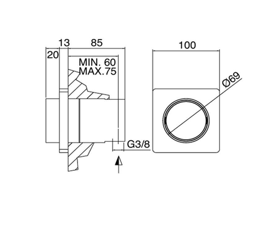 Cascata tubolare marca Zazzeri modello Shower Unix turbo LED parete finitura cromata 100x100 mm arredamento bagno cromo incasso garanzia 10 anni azienda certificata qualità made in italy