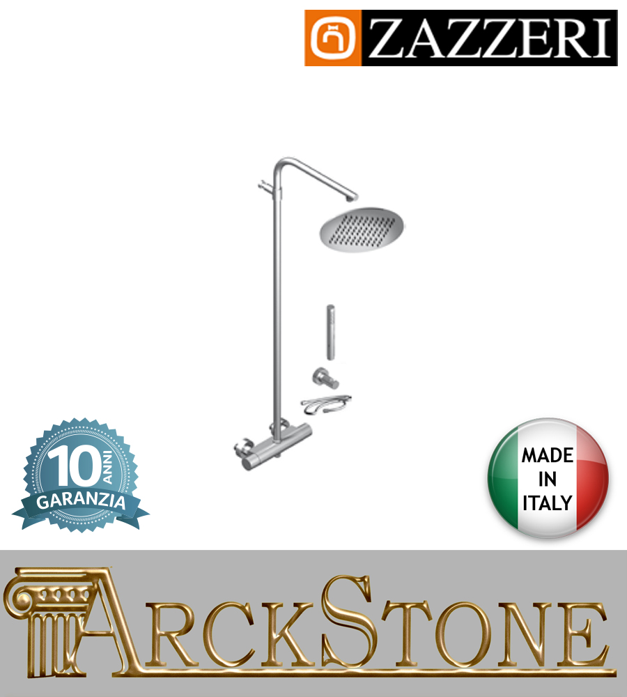 Colonna doccia marca Zazzeri modello 100 3600SO01A00+29001530AB0+68000412A00 CRCR finitura ottone cromato miscelatore termostatico parete anticalcare soffione tondo Ø200mm doccetta flessibile muro arredo bagno casa garanzia 10 anni qualità made in italy