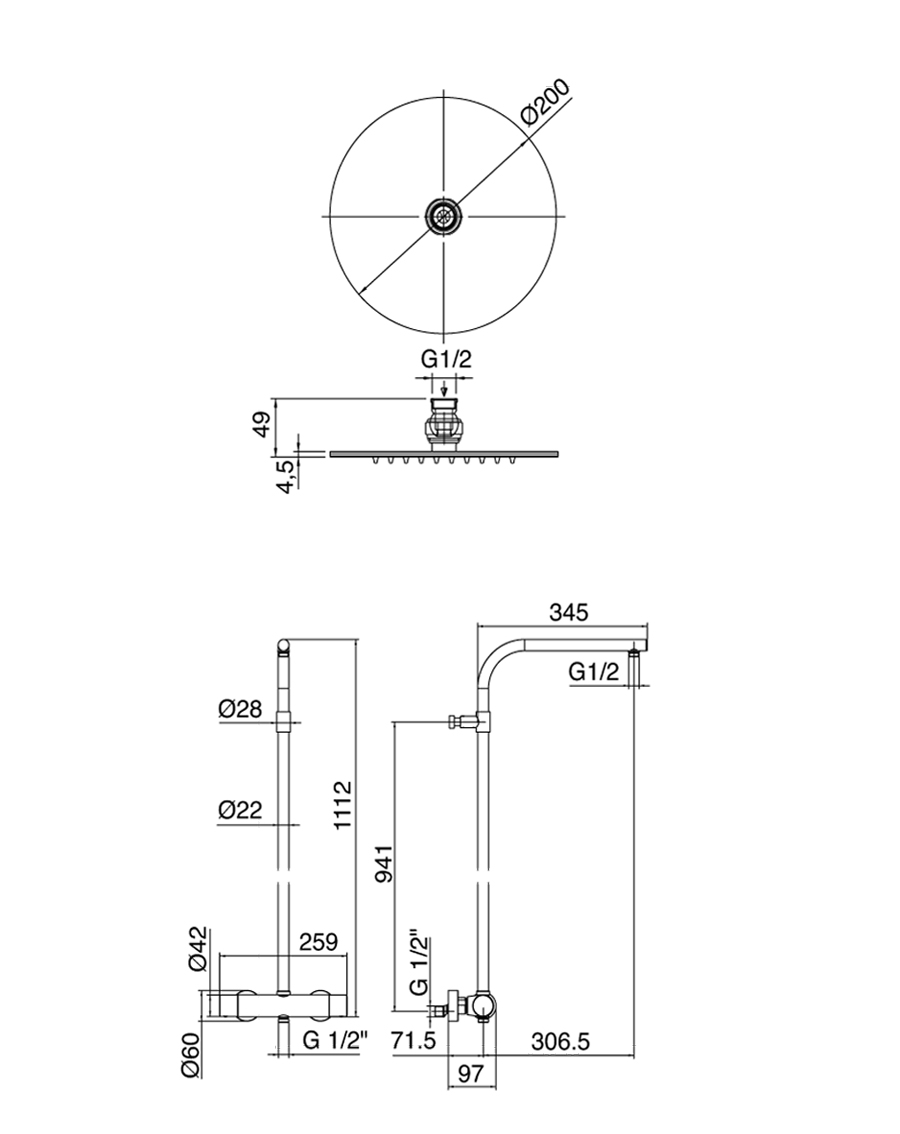 Modello: 100 - Colonna doccia termostatica, soffione tondo Ø220mm doccetta