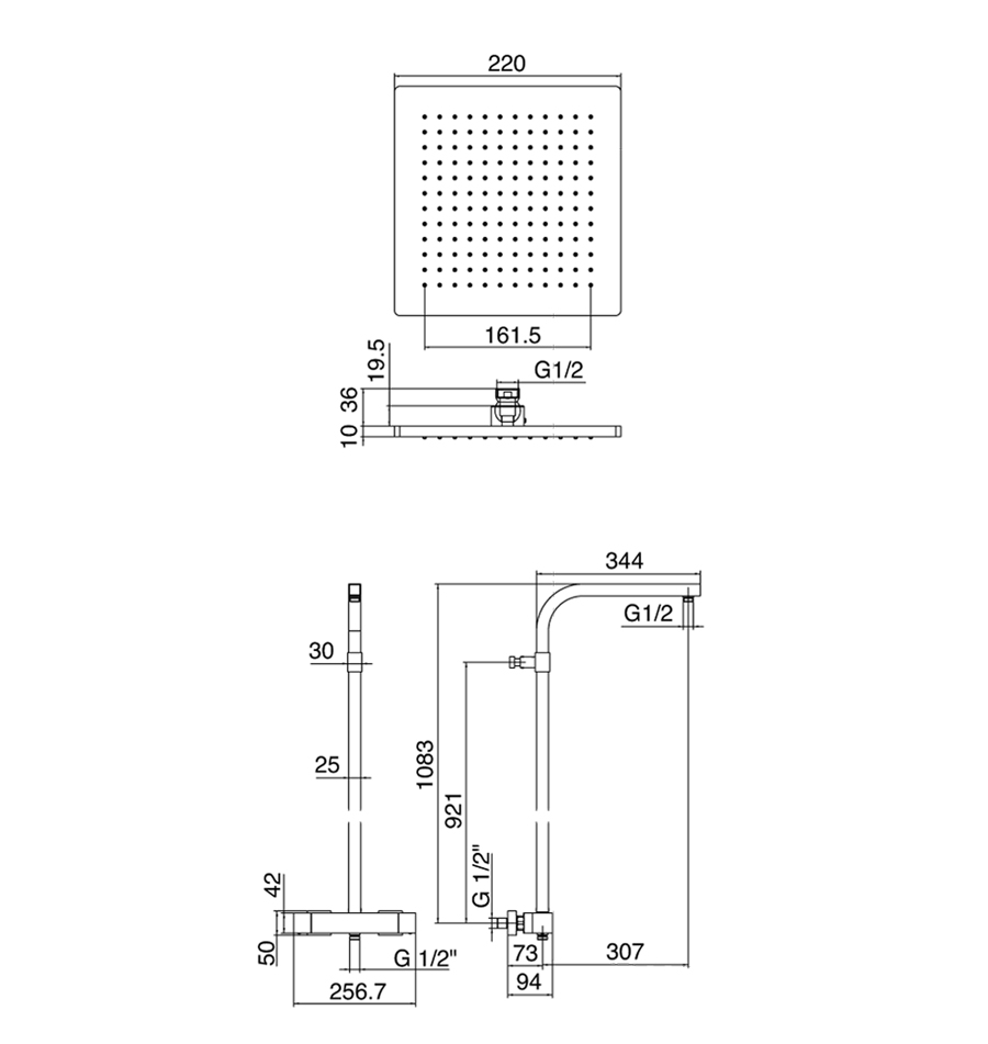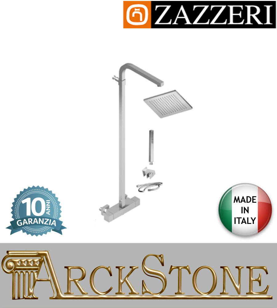 Colonna doccia marca Zazzeri modello Qquadro doccetta soffione 220 mm miscelatore termostatico anticalcare flessibile deviatore finitura cromata parete arredo bagno garanzia 10 anni azienda certificata qualità made in italy