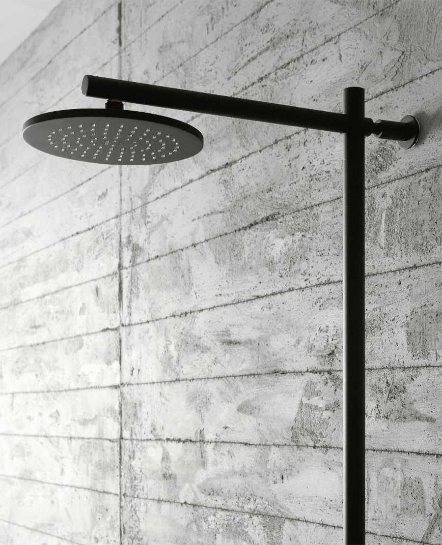 Colonna doccia Zazzeri Showers 2900SO07A00+2900T608A01+2900AM04A00 3131 Miscelatore termostatico soffione anticalcare ispezionabile tondo Ø220 mm doccetta finitura nero parete bagno garanzia 10 anni made in italy