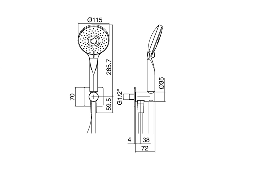 Set doccia con doccetta anticalcare multifuzione con presa acqua (Soft - Idrogetto - Getto normale) Ø115 e supporto.