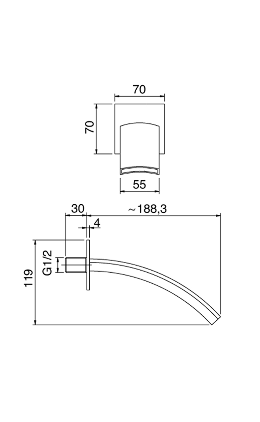 Getto erogazione vasca a parete.