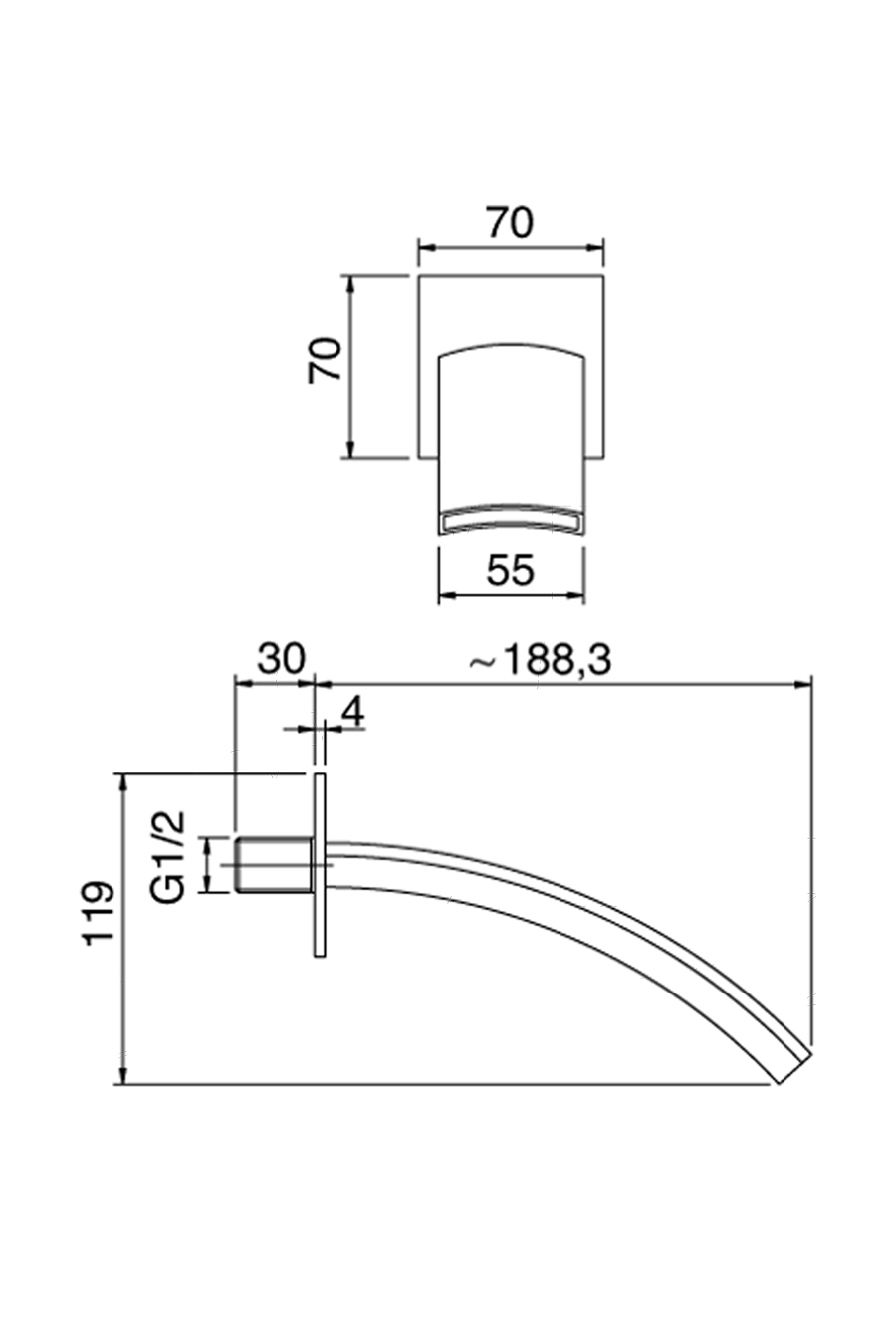 Getto erogazione vasca a parete.