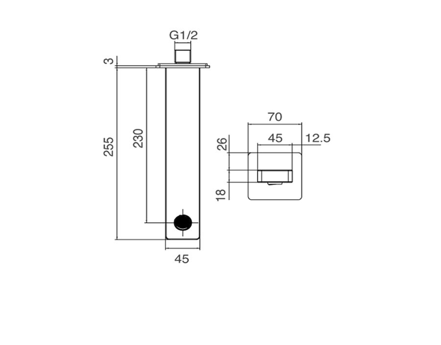 Getto lavabo vasca incasso 230mm marca Zazzeri modello Qquadro areatore finitura cromata cromo rubinetteria parete bocca erogazione rubinetto muro casa arredo bagno arredamento garanzia 10 anni qualità made in italy