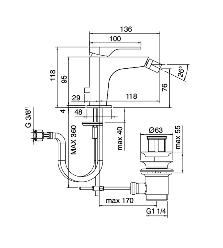 Miscelatore bidet h75 mm marca Zazzeri modello 100 completo finitura ottone cromato areatore appoggio rubinetto rubinetteria arredamento cromo casa acqua home arredo bagno garanzia 10 anni qualità made in italy