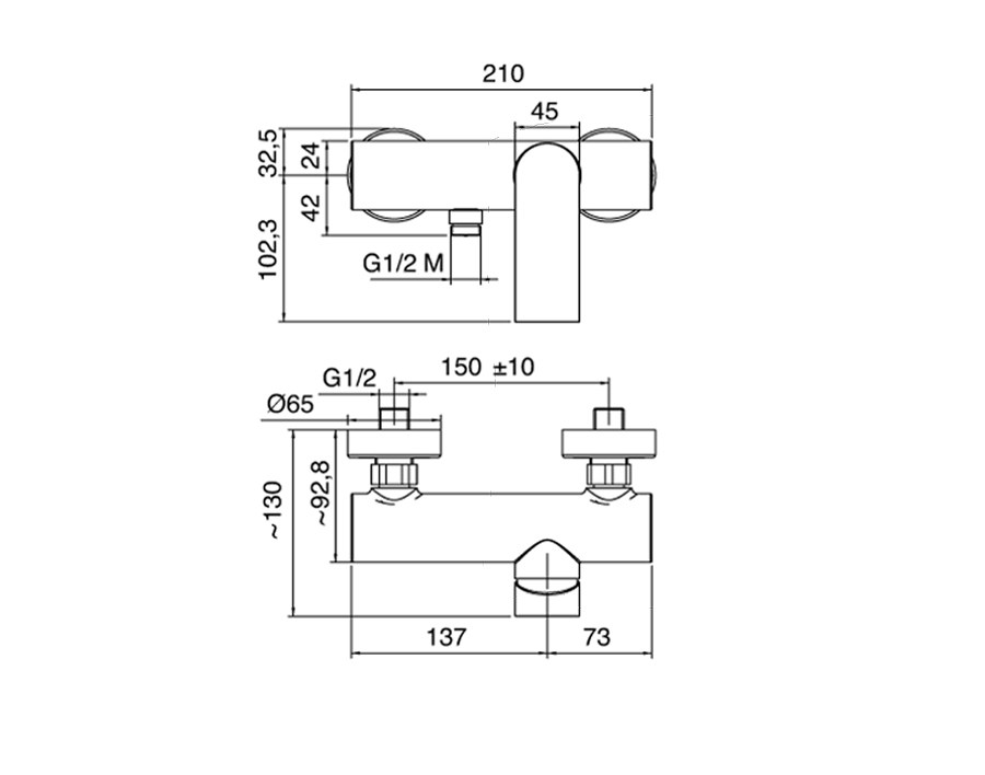 Miscelatore doccia esterno senza flessibile e doccetta.
