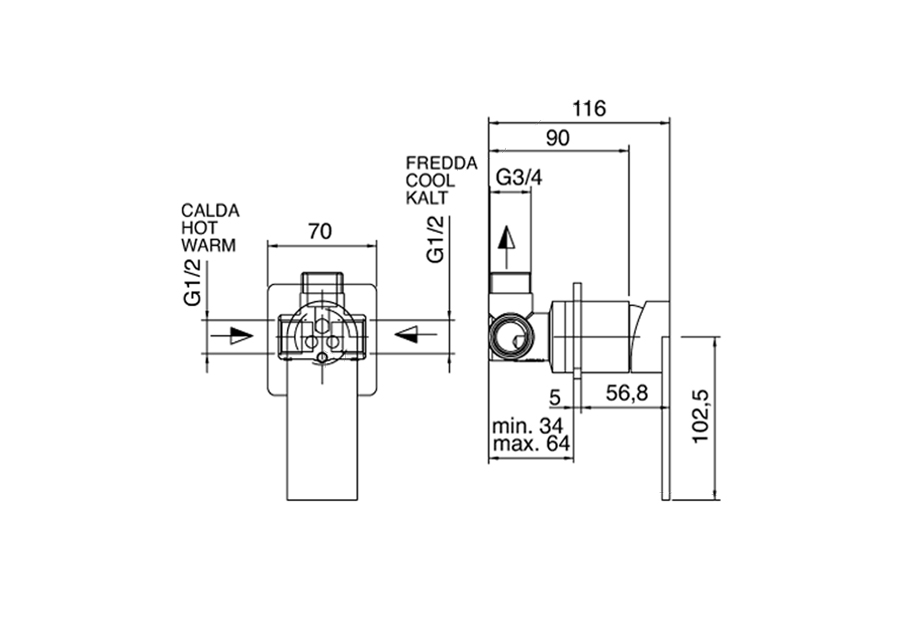 Miscelatore meccanico da incasso - completo - Borchia piccola.