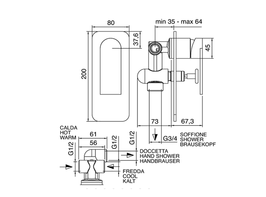 Miscelatore doccia marca Zazzeri modello 100 incasso deviatore completo finitura ottone cromato rubinetteria cromo rubinetto arredamento arredo bagno azienda certificata casa garanzia 10 anni qualità made in italy