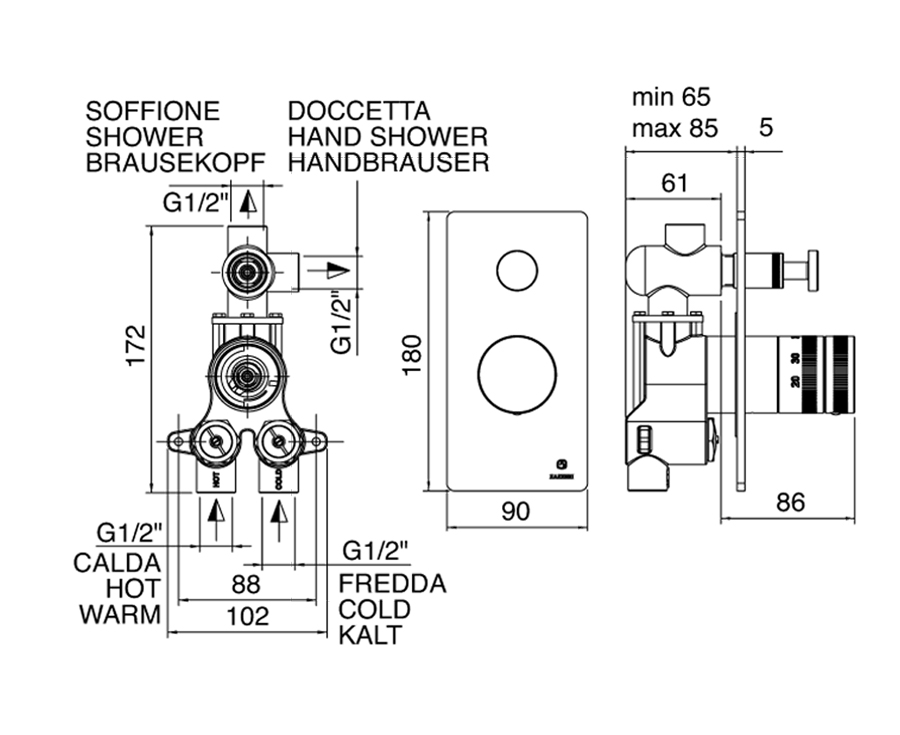 Miscelatore doccia marca Zazzeri modello 100 termostatico COMPACT due uscite incasso completo finitura ottone cromato rubinetteria cromo rubinetto arredamento arredo bagno casa garanzia 10 anni qualità made in italy