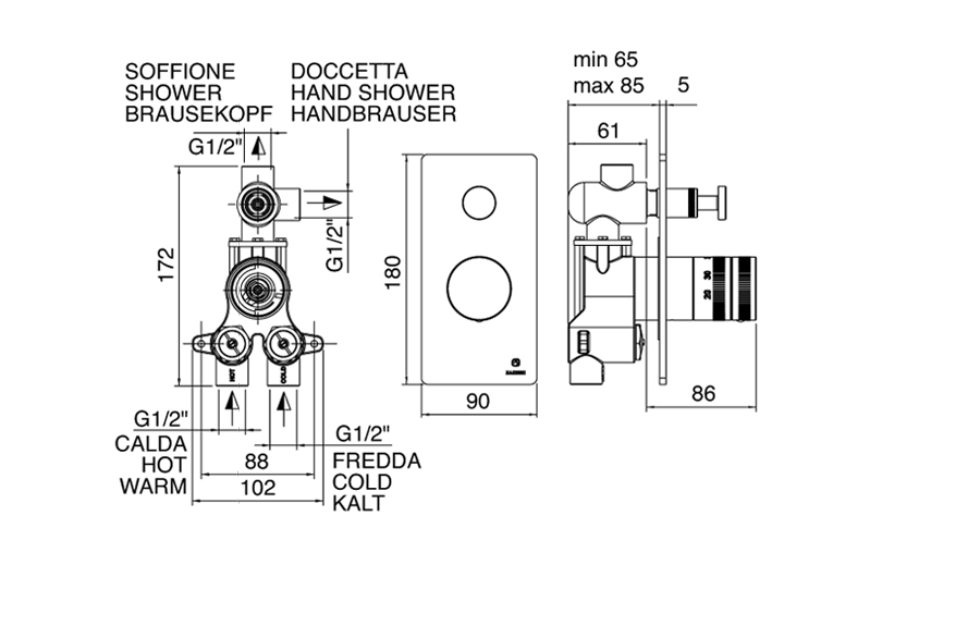 Gruppo termostatico COMPACT da incasso 2 uscite.