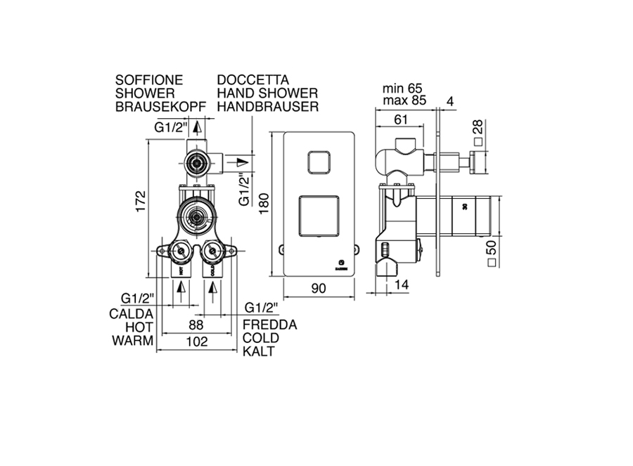 Gruppo termostatico COMPACT da incasso 2 uscite.