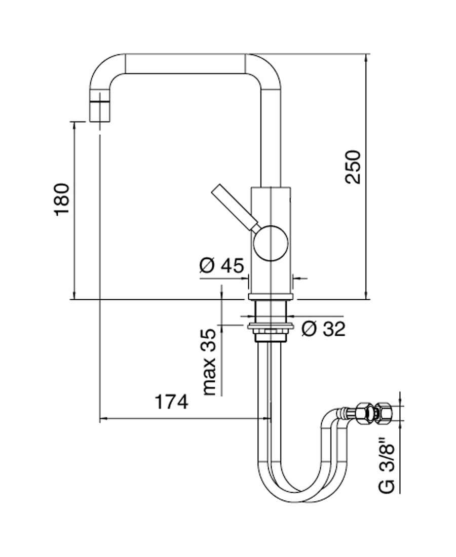 Miscelatore lavabo marca Zazzeri modello Da-Da 7 Mono finitura ottone cromato scarico automatico Collo Girevole Forma Quadro appoggio monoforo