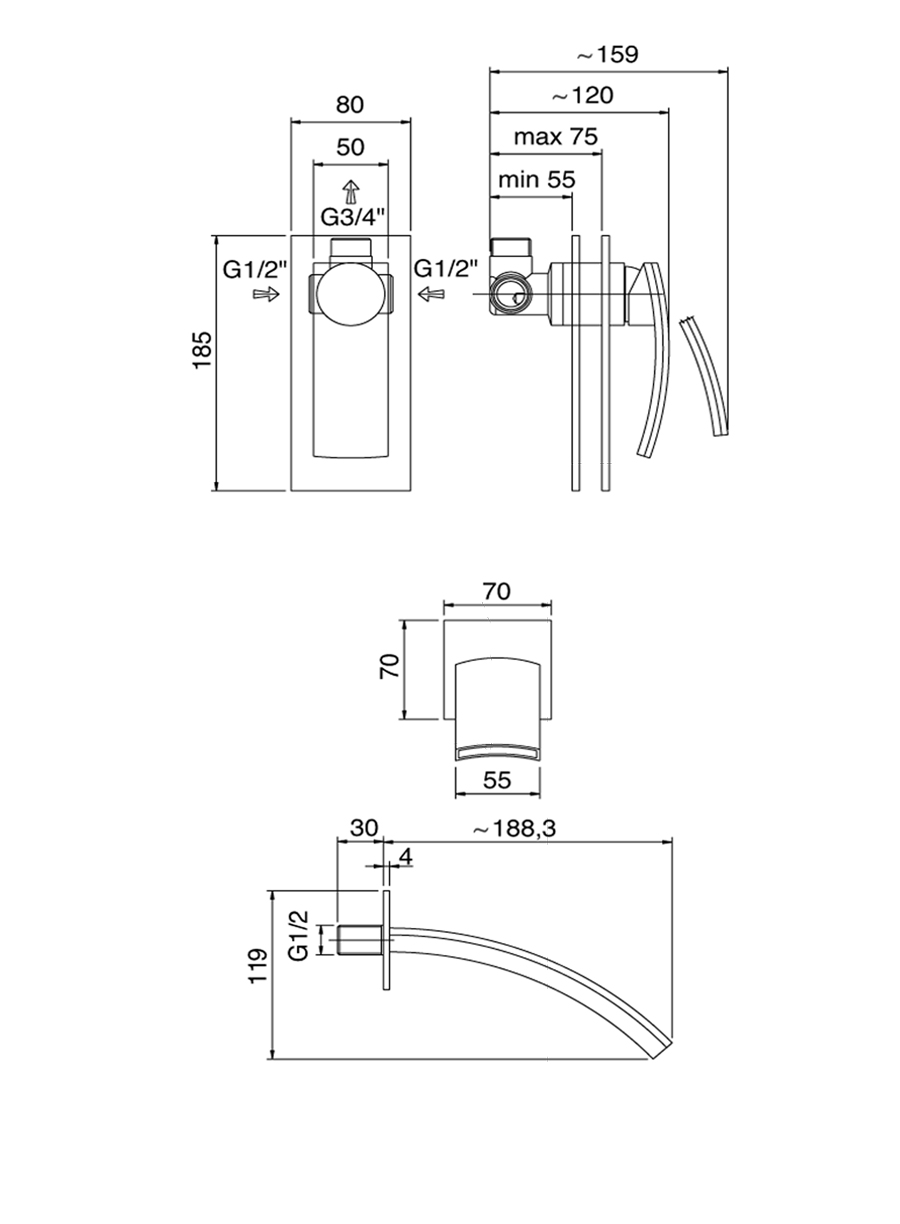 Miscelatore lavabo marca Zazzeri modello Moon Mono finitura ottone cromato incasso parete rubinetto rubinetteria acqua arredamento casa arredo bagno muro azienda certificata garanzia 10 anni qualità made in italy
