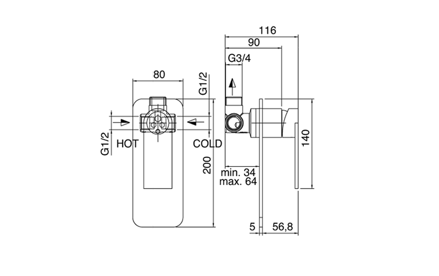 Miscelatore meccanico doccia marca Zazzeri modello Shower Unix completo finitura cromata incasso parete rubinetto arredamento rubinetteria cromo muro lavanderia garanzia 10 anni azienda certificata made in italy