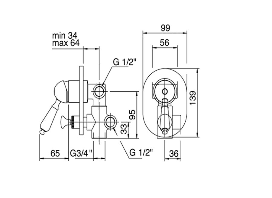 Miscelatore doccia meccanico da incasso con deviatore - completo.