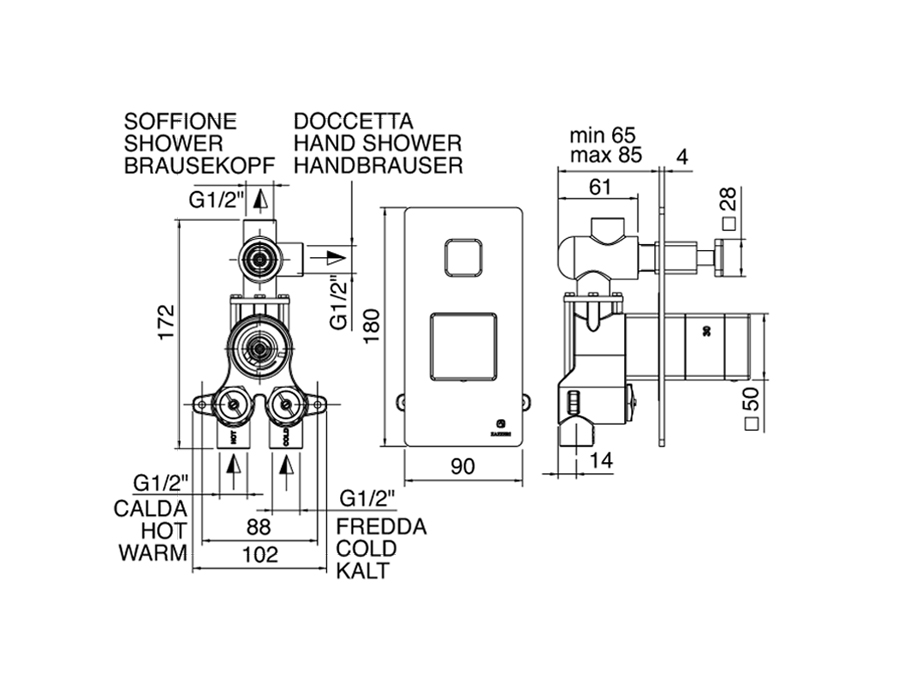 Miscelatore termostatico COMPACT da incasso 2 uscite.