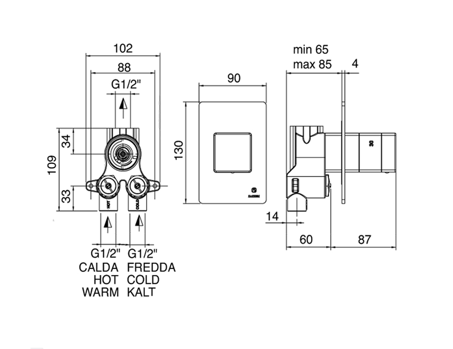 Miscelatore termostatico COMPACT da incasso 1 uscita.