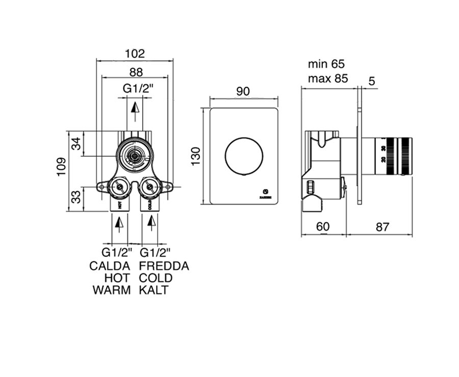 Miscelatore termostatico COMPACT da incasso 1 uscita.