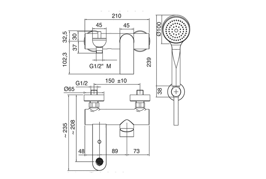 Modello: 100 - Miscelatore vasca esterno con flessibile e doccetta a mano