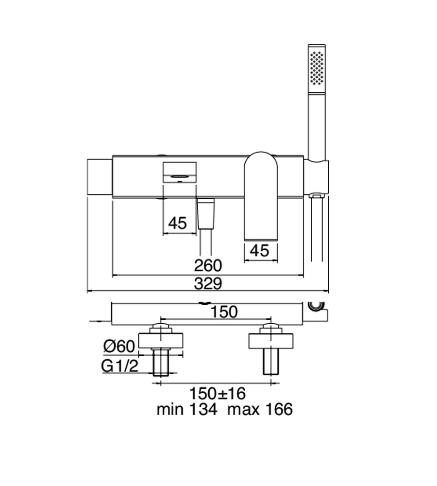 Modello: 100 - Miscelatore vasca esterno duplex 1/2”