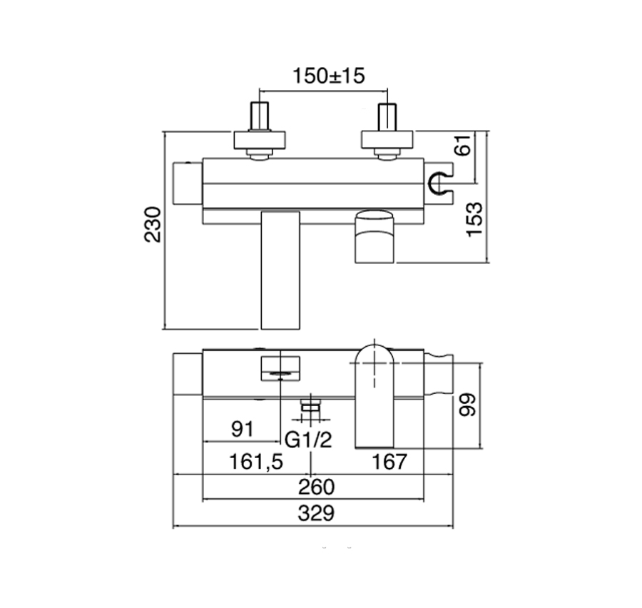 Miscelatore vasca esterno senza flessibile e doccetta.