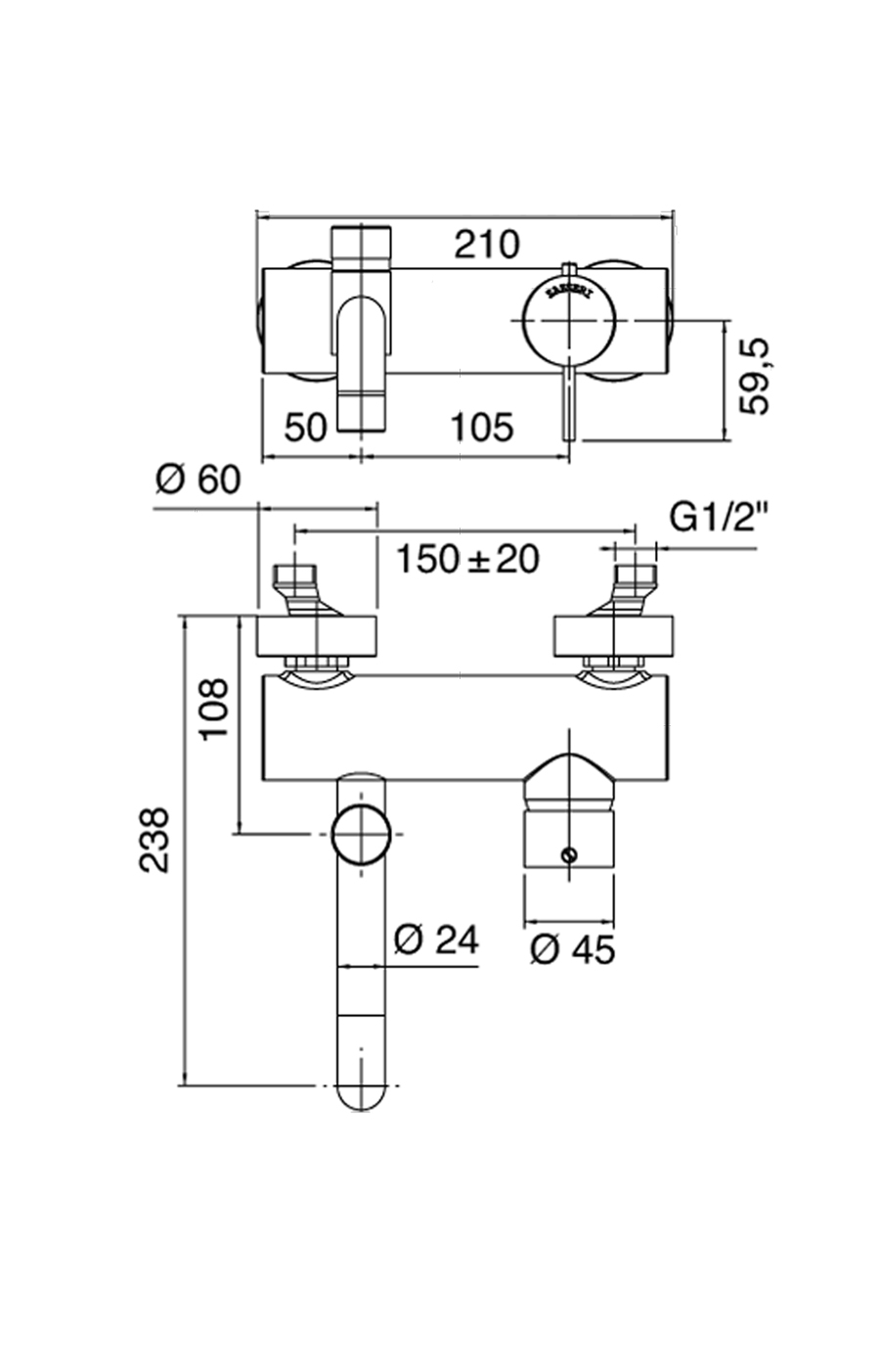 Miscelatore vasca esterno senza flessibile e doccetta.