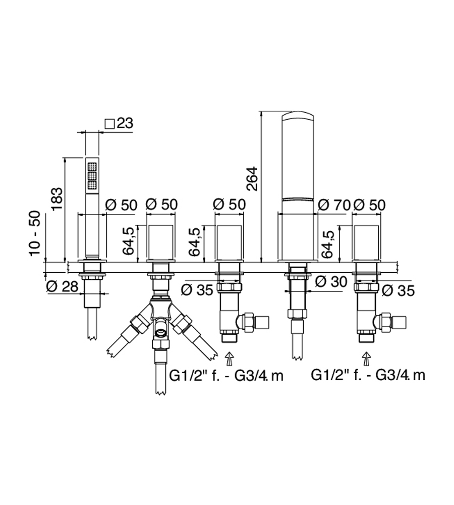 Miscelatore vasca marca Zazzeri modello Moon finitura ottone cromato appoggio 5 fori batteria piano arredamento casa home arredo bagno cromo acqua fontana azienda certificata garanzia 10 anni qualità made in italy