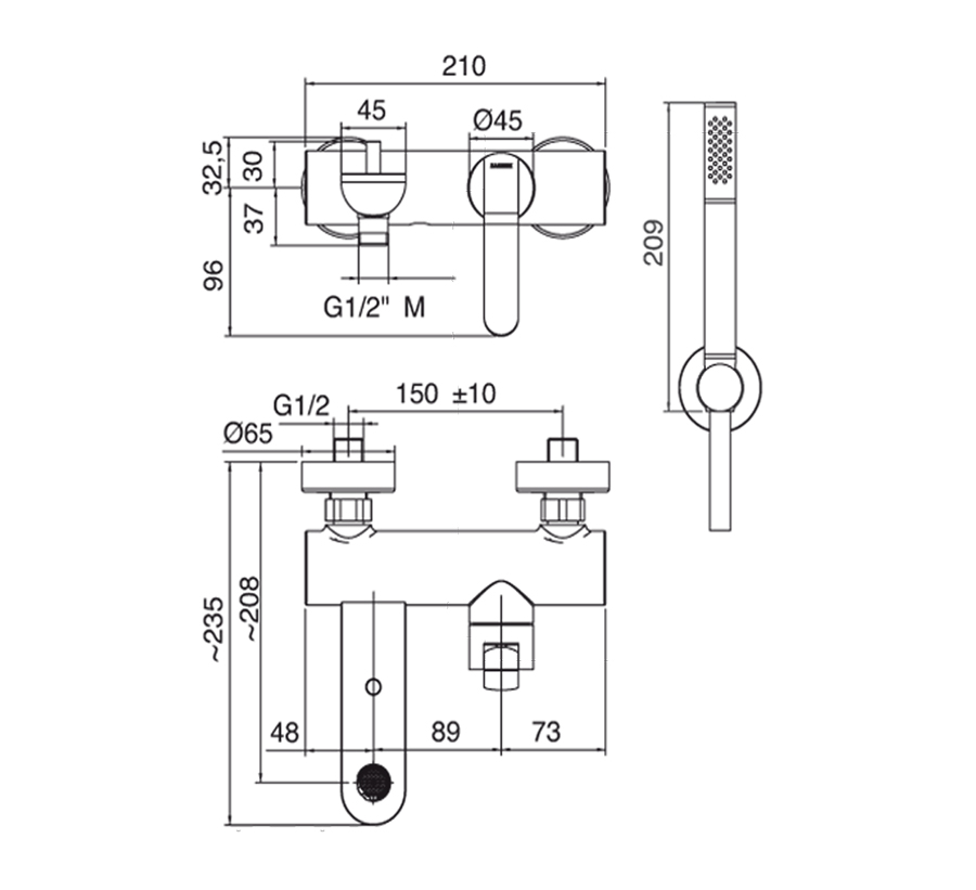Miscelatore vasca esterno - Completo di flessibile e doccetta.