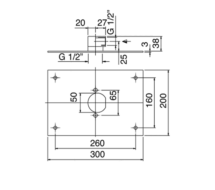 Modello: 100 - Piastra di fissaggio per braccio doccia a soffitto e a parete
