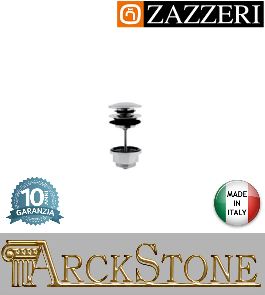 Piletta scarico marca Zazzeri modello Qquadro completo finitura cromato comando pressione appoggio rubinetteria arredamento cromo casa home acqua arredo bagno garanzia 10 anni qualità made in italy