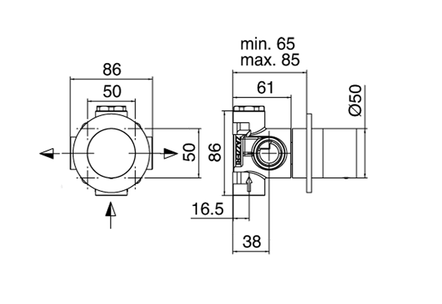 Deviatore incasso G3/4" con stop 2 uscite - completo.
