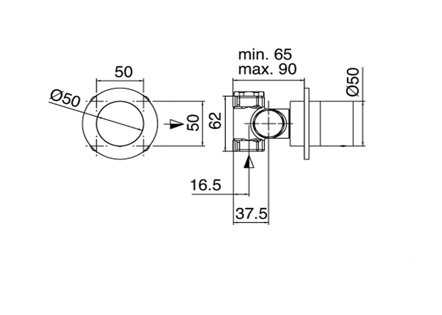 Rubinetto arresto marca Zazzeri modello Da-Da 7 Mono G3/4" completo vitone ceramico 90° finitura ottone cromata incasso parete rubinetto arredamento rubinetteria cromo arredo bagno garanzia 10 anni qualità made in italy