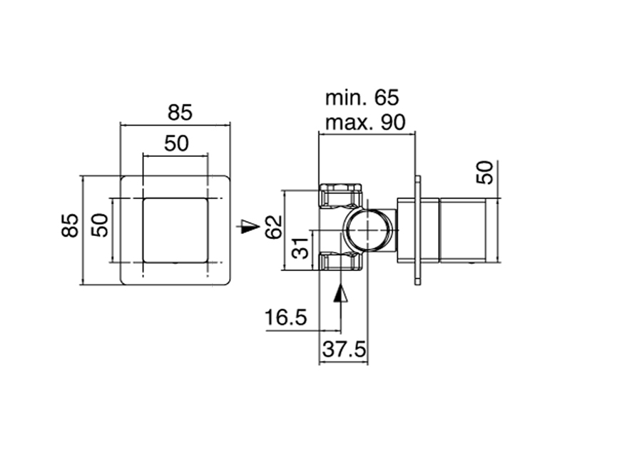 Rubinetto arresto marca Zazzeri modello Shower Unix G 3/4" completo vitone ceramico 90° finitura ottone cromato incasso parete rubinetto arredamento rubinetteria cromo arredo bagno garanzia 10 anni qualità made in italy