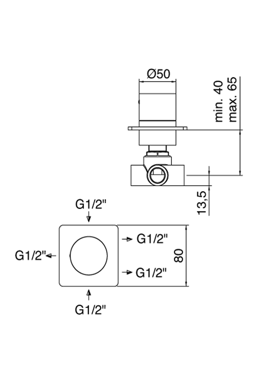Rubinetto incasso G 1/2" a 3 vie - completo.