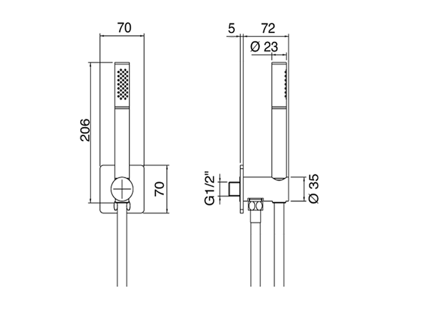 Set doccia con doccetta stilo completa di presa acqua a muro e supporto.