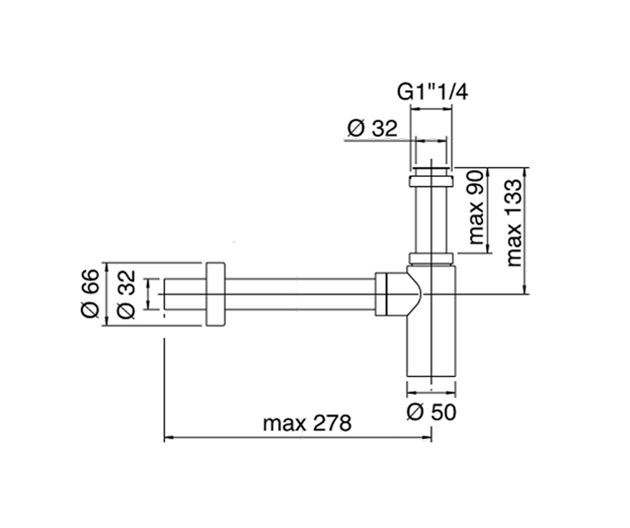 Sifone a bottiglia ispezionabile per lavabo.