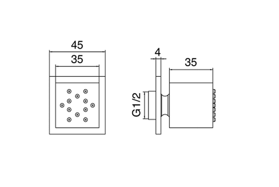 Soffioncino marca Zazzeri modello Moon Mono finitura metallo cromato parete laterale orientabile quadrato 45x45 mm arredamento casa home arredo bagno azienda certificata acqua garanzia 10 anni qualità made in italy