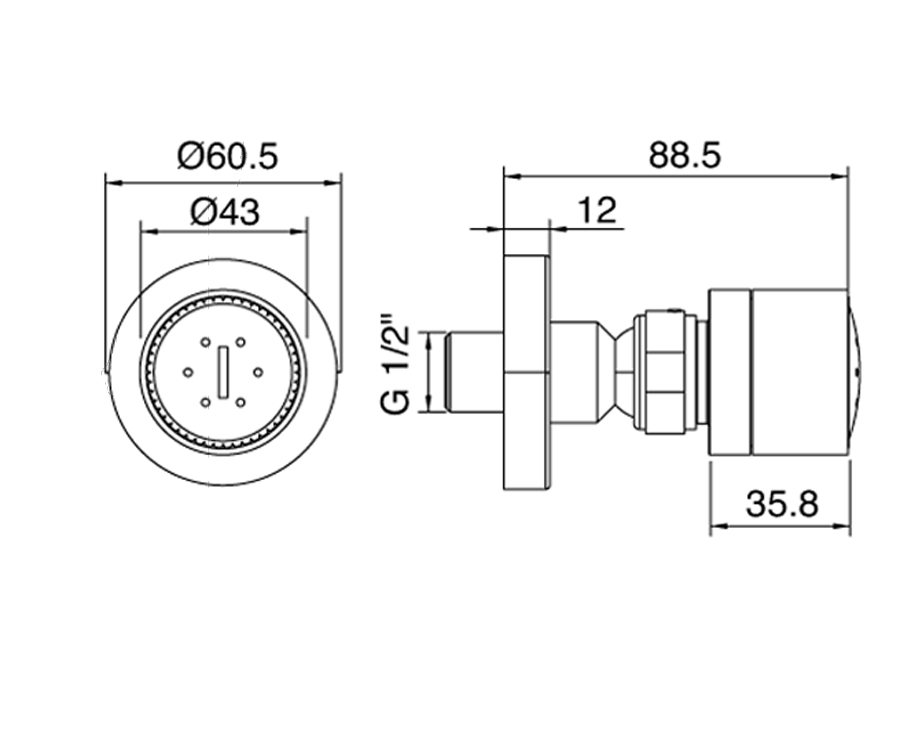 Soffioncino tondo laterale marca Zazzeri modello Shower Unix parete finitura cromata rubinetteria orientabile muro casa arredamento bagno cromo incasso Diametro Ø 60,5 mm garanzia 10 anni azienda certificata qualità made in italy
